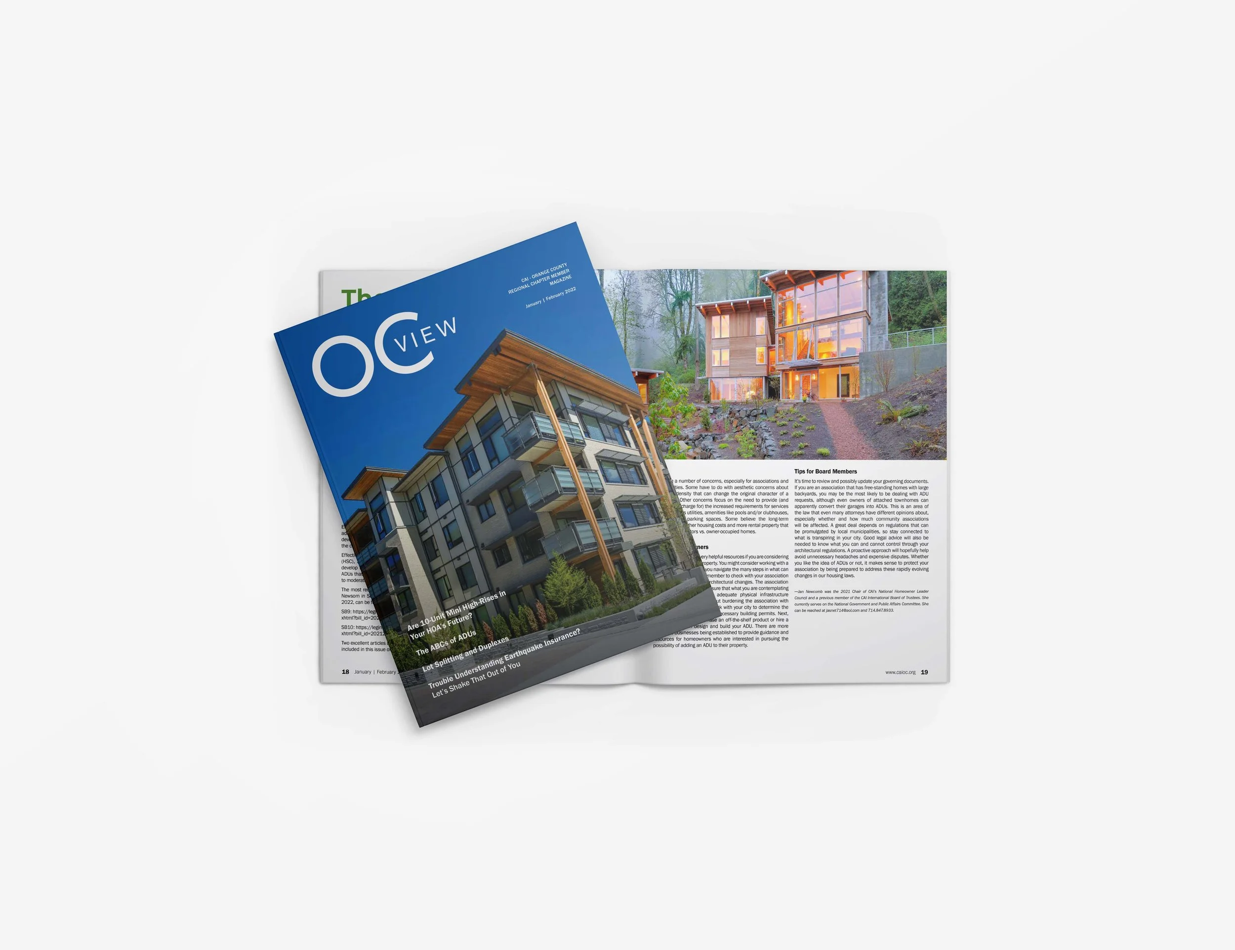 OC View is a bi-monthly magazine created for the Community Associations Institute (CAI), an international membership organization dedicated to Building Better Communities. The publication serves as an educational and informational resource for volunteer homeowners and board members who govern community associations, as well as the professional community managers and service providers who support them.